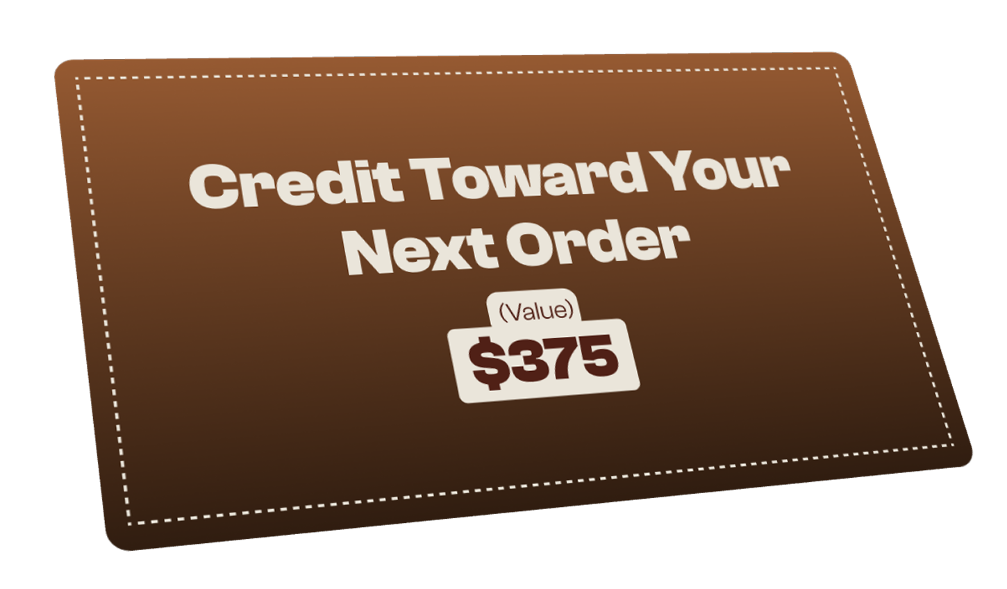 Apply this credit toward your next Rustic Expressions order of $2,500 or more. Perfect for adding matching pieces later.
