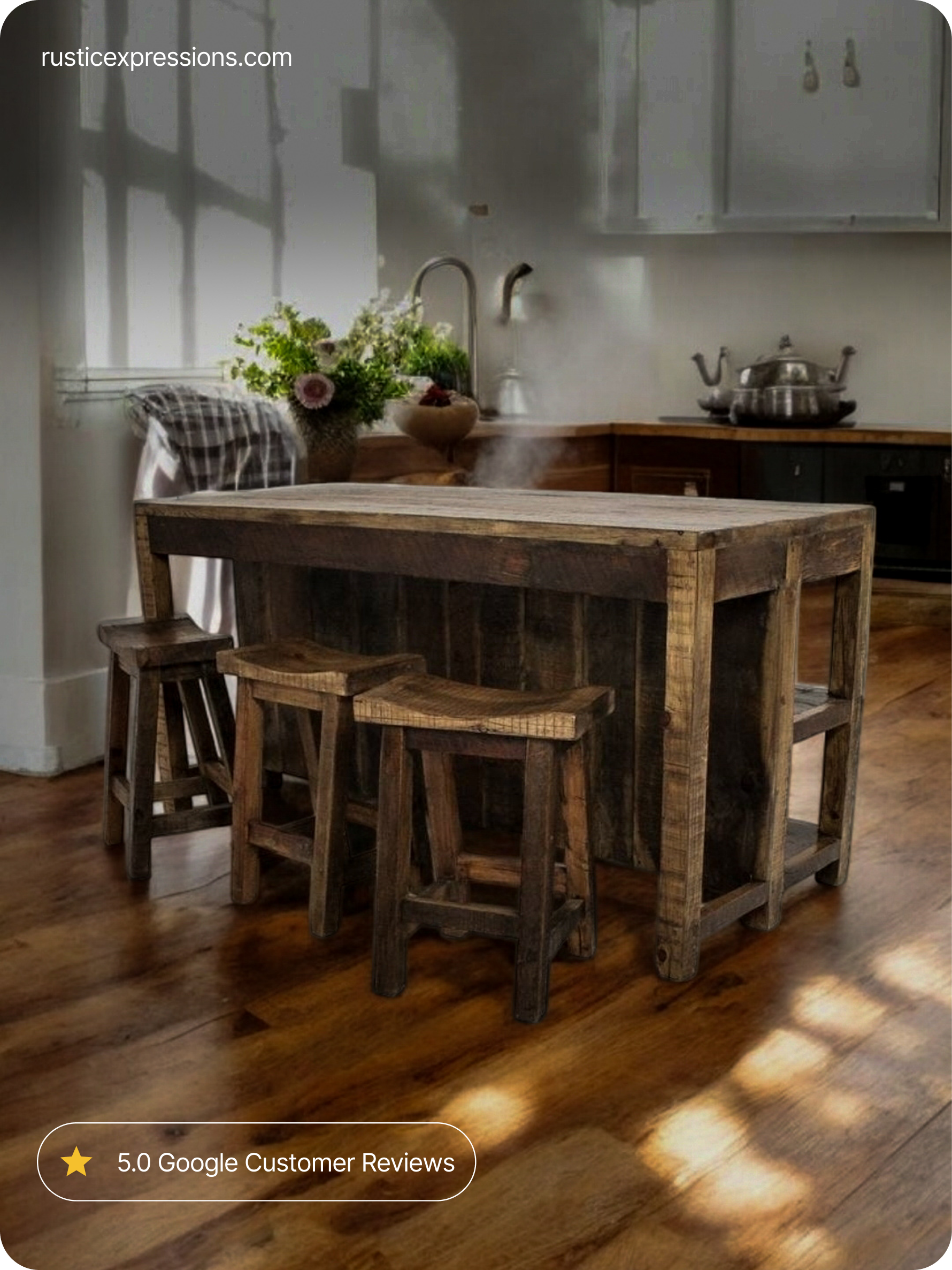 You deserve a kitchen island that’s custom-sized, made from real reclaimed wood, and ready to be the centerpiece of your home.